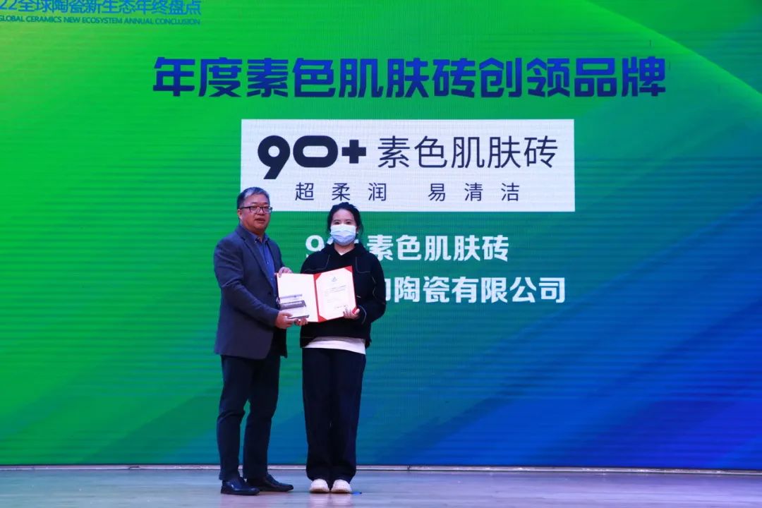 90+素色肌膚磚獲得了“年度素色肌膚磚創領品牌”的稱號;