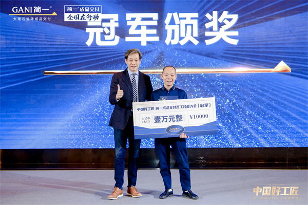 5月24日,由中國建筑裝飾協會、GANI簡一、工匠(北京)俱樂部聯合主辦,中國建筑衛生陶瓷協會、中國陶瓷工業協會瓷磚粘貼技術專業委員會、亞太酒店設計、美國《室內設計》、東方雨虹、沃能工具作為支持單位,“中國好工匠·簡一成品交付瓦工技能大會”在北京北辰五洲皇冠酒店隆重舉辦。東莞曾紀雄以精湛技藝登上「中國好工匠」冠軍寶座,西安何大亮、洛陽王宏強分別獲得亞軍和季軍,武漢彭斌、北京宮能飛分別獲得最佳人氣獎和用戶滿意獎。