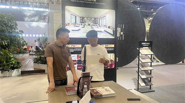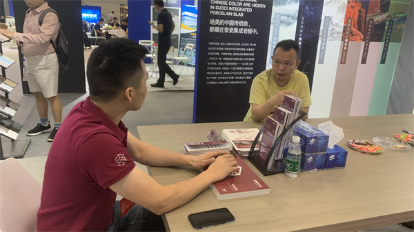 本次展會,索瓷的展位以簡約統一的設計風格,“晨光魚肚白”的背景墻和“云墨灰”的墻面組合,充分呈現出集成巖板的材料美學和創新技術,吸引了眾多協會領導、設計師和客商前來參觀和指導交流。