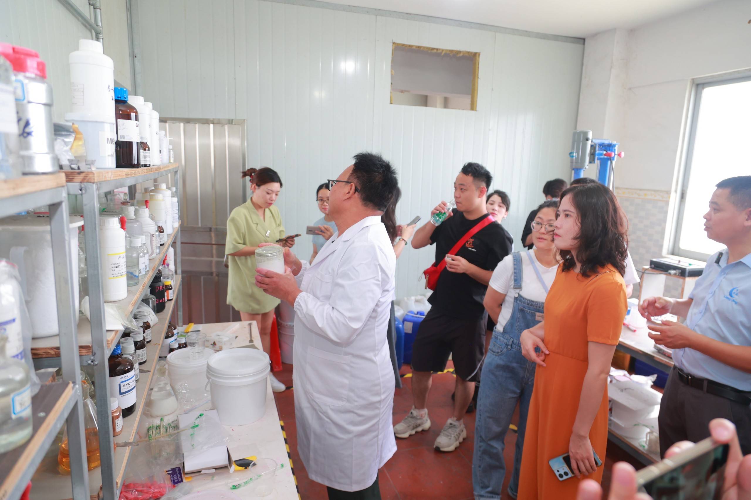 亮晶可麗耐創(chuàng)立于2007年,至今已經(jīng)走過16個(gè)年頭,是一家專業(yè)專注于純亞克力材料的高新科技企業(yè),擁有廣東四會(huì)、花都和獅嶺三大生產(chǎn)工廠?;顒?dòng)當(dāng)天,衛(wèi)浴媒體團(tuán)分別參觀了亮晶四會(huì)和花都工廠,從原材料車間、調(diào)色車間、板材生產(chǎn)車間、實(shí)驗(yàn)室到人造石車間,全方位地直觀感受企業(yè)強(qiáng)大的生產(chǎn)實(shí)力以及領(lǐng)先于行業(yè)的技術(shù)水平和研發(fā)能力。
