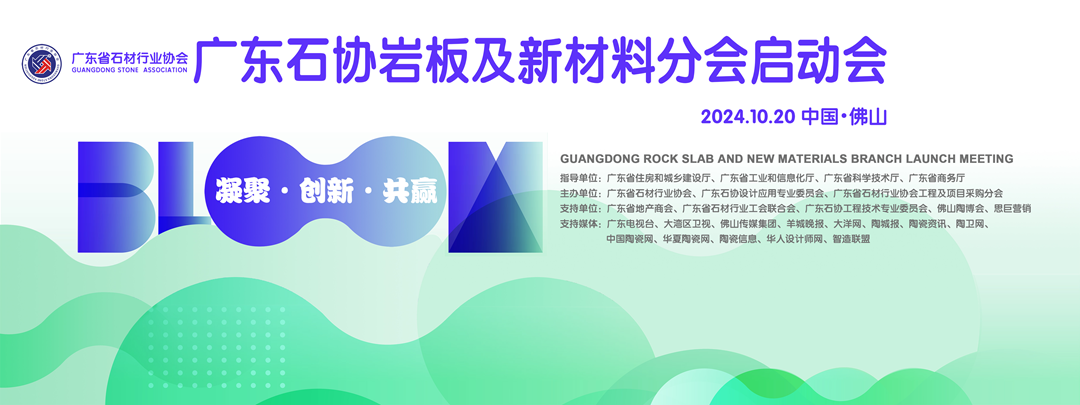 隨著建筑、家居等行業的不斷發展,巖板及新材料在市場中的應用日益廣泛。為了推動廣東地區巖板及新材料行業的發展,加強企業間的交流與合作,規范行業標準,以“凝聚·創新·共贏”為主題的廣東石協巖板及新材料分會啟動會于2024年10月20日在佛山華夏陶瓷博覽城國際會展中心隆重舉行。活動匯聚了多位政府導、設計大師、專家、企業家以及社會各界人士,共同見證了巖板及新材料行業發展的新篇章。